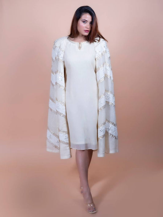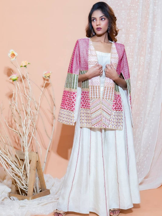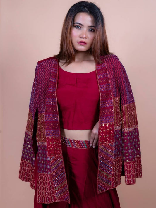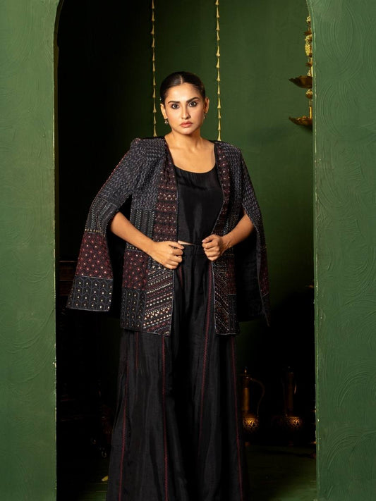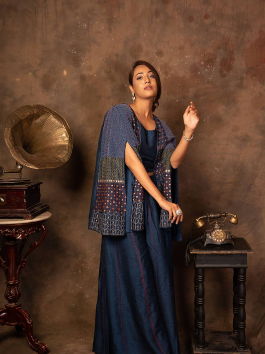 Elevate your wardrobe with the Blazer and Cape Set from Punam Khetann, where sophistication meets sustainable fashion. Expertly crafted from eco-friendly, premium fabrics, this set effortlessly blends classic tailoring with modern design. The tailored blazer exudes sharp elegance, while the flowing cape adds a dramatic flair, making it perfect for business meetings, formal occasions, or a bold everyday statement. Designed for both comfort and durability, this versatile set embodies the quality and timeless style Punam Khetann is known for, offering a refined and eco-conscious addition to your collection.